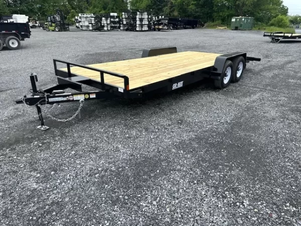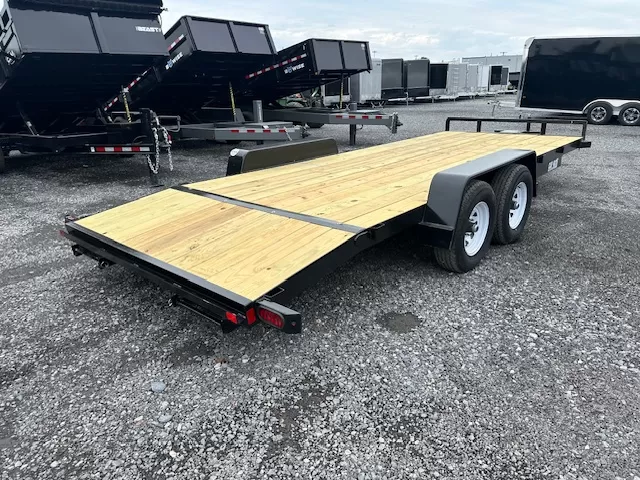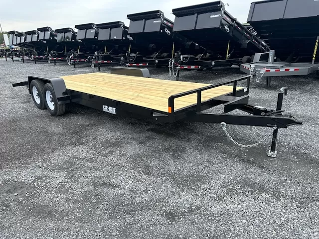 Car Mate 7×20 Tandem Axle Car Hauler. Heavy-duty 10K GVWR (9,990 lb) capacity with convenient Slide In Ramps. Extra length for two cars, heavy trucks, or long equipment transport.