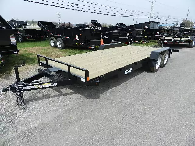 The Car Mate 7×20 Car Trailer with 7,000 lb GVWR and Slide In Ramps is designed for users who frequently haul longer items or require the space for two compact vehicles. The 20-foot deck, combined with the proven stability of a tandem axle setup (7K GVWR), provides a secure and reliable platform for heavy-duty use.