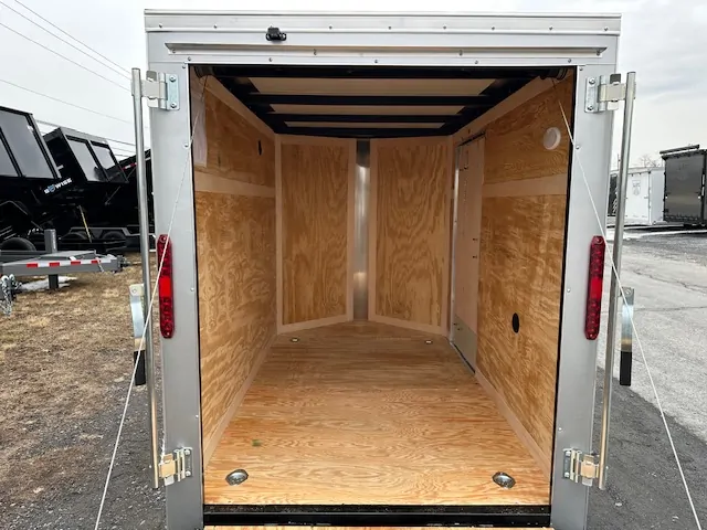 • V-Nose Design: The aerodynamic front profile reduces wind resistance, which aids in towing efficiency. It also provides extra depth inside the trailer’s front for longer items.