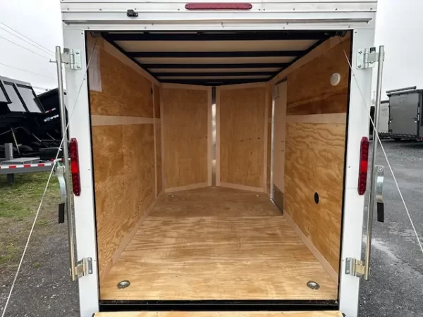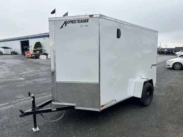 The Homesteader 6×10 V-Nose Cargo Trailer with Rear Ramp Door is engineered for efficient and convenient transport. Built with the renowned quality of Homesteader Trailers, this unit is a popular choice for both small businesses and recreational users.