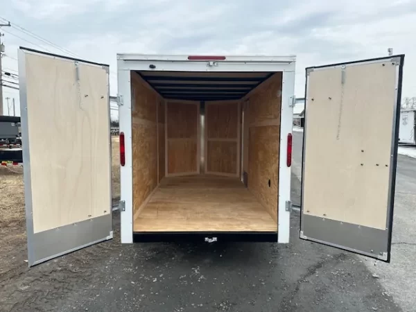 • Rear Barn Doors: The sturdy double swing doors provide a wide, unobstructed opening, which is ideal for hand-loading bulky, non-wheeled items. This configuration also offers enhanced security and a superior weather seal, protecting valuable contents from theft and weather.