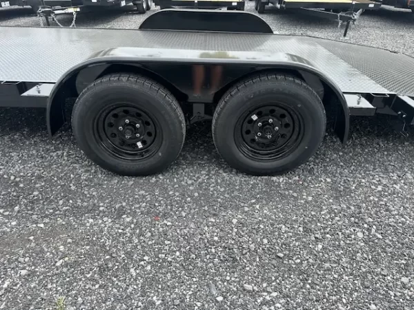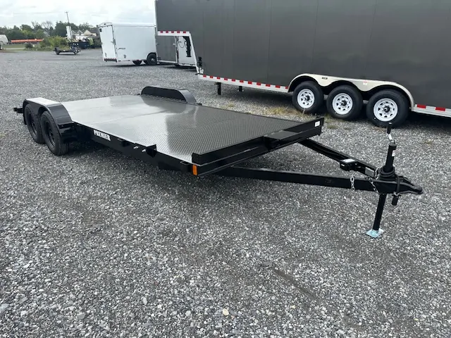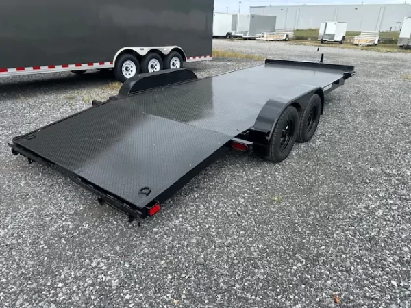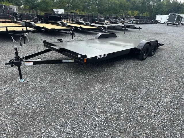 The Premier 7×20 Open Car Trailer with Full Steel Deck is built for high-volume and heavy-duty transport needs. This model features a robust frame and dual 5,200 lb axles for a reliable 10,000 lb GVWR, providing the stability and capacity required for safely hauling two standard vehicles or one heavy, long-wheelbase truck.